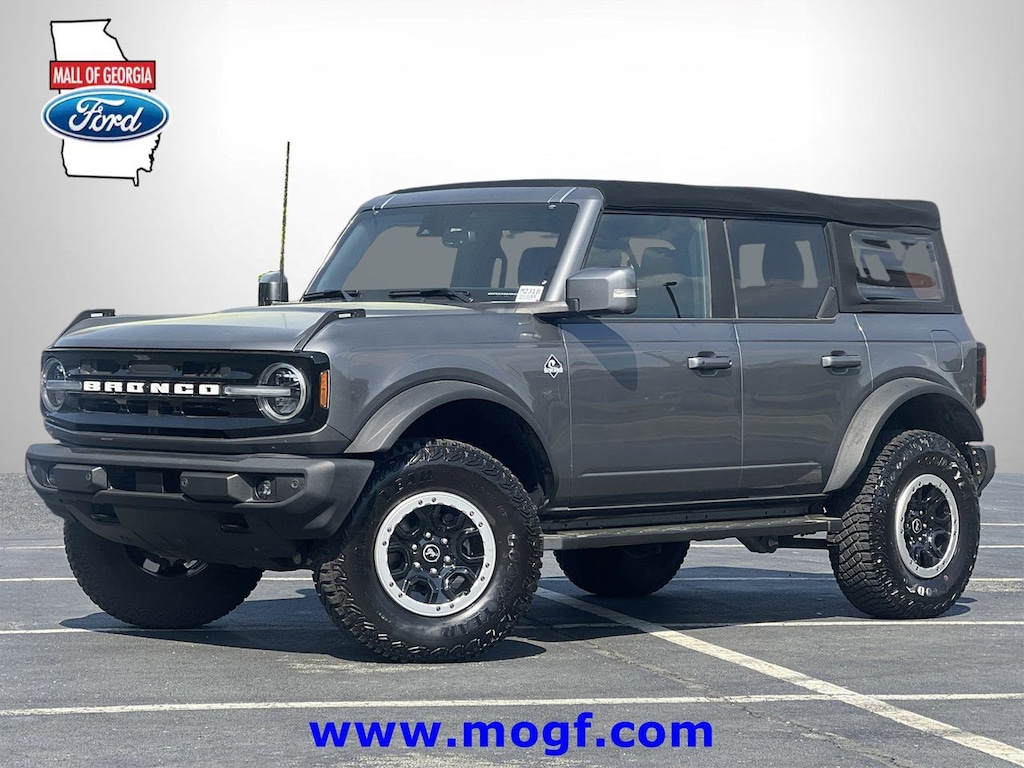 ** ALLOY WHEELS **, ** RUNNING BOARDS **, ** FORD CERTIFIED **, ** NAVIGATION / NAV / NAVI / GPS **, ** CLEAN CAR FAX **, ** ONE OWNER **, ** LOW MILES **, **LEATHER**, Bronco Outer Banks Advanced, 4D Sport Utility, 2.3L EcoBoost I-4, 10-Speed Automatic, 4WD, Gray Metallic, Dark Gray W/Navy Pier Leather, 12" LCD Capacitive Touchscreen w/Swipe Capability, 2 Smart Charging USB Ports In Dashboard, 360-Degree Camera, 4.7 Final Drive Ratio, 6 Speakers, Adaptive Cruise Control, Additional Sound Deadening, Air Conditioning, AM/FM radio: SiriusXM with 360L, AM/FM Stereo, Automatic temperature control, Connected Built-In Navigation, Equipment Group 313A High Package, Equipment Group 314A Lux Package, Evasive Steering Assist, Front dual zone A/C, Front Parking Sensors, Heated Steering Wheel, High Clearance Fender Flares, High Clearance Suspension, Information on Demand Panel, Navigation system: Connected Navigation, Position-Sensitive Bilstein Shock Absorbers, Power steering, Power windows, Radio data system, Radio: B&O Sound System by Bang & Olufsen, Remote keyless entry, Sasquatch Package, Sideview Mirrors, SiriusXM Radio w/360L, Steering wheel mounted audio controls, SYNC 4, Universal Garage Door Opener, Wheels: 17" Black High Gloss-Painted Aluminum, Wireless Charging Pad. CARFAX One-Owner. Certified.