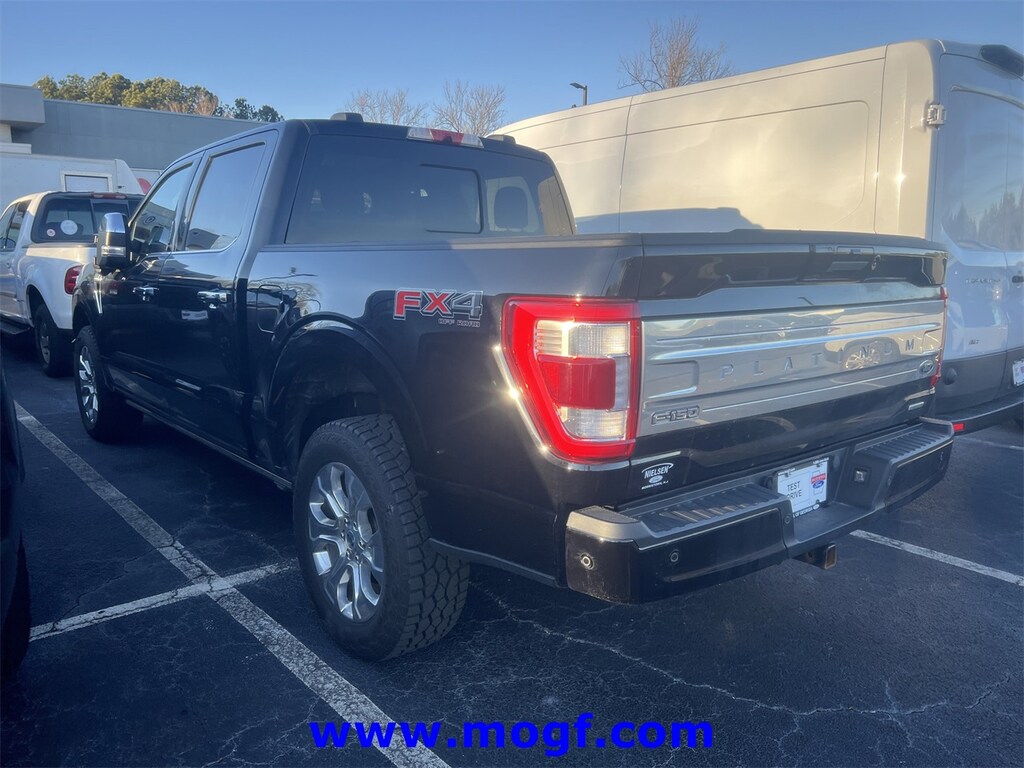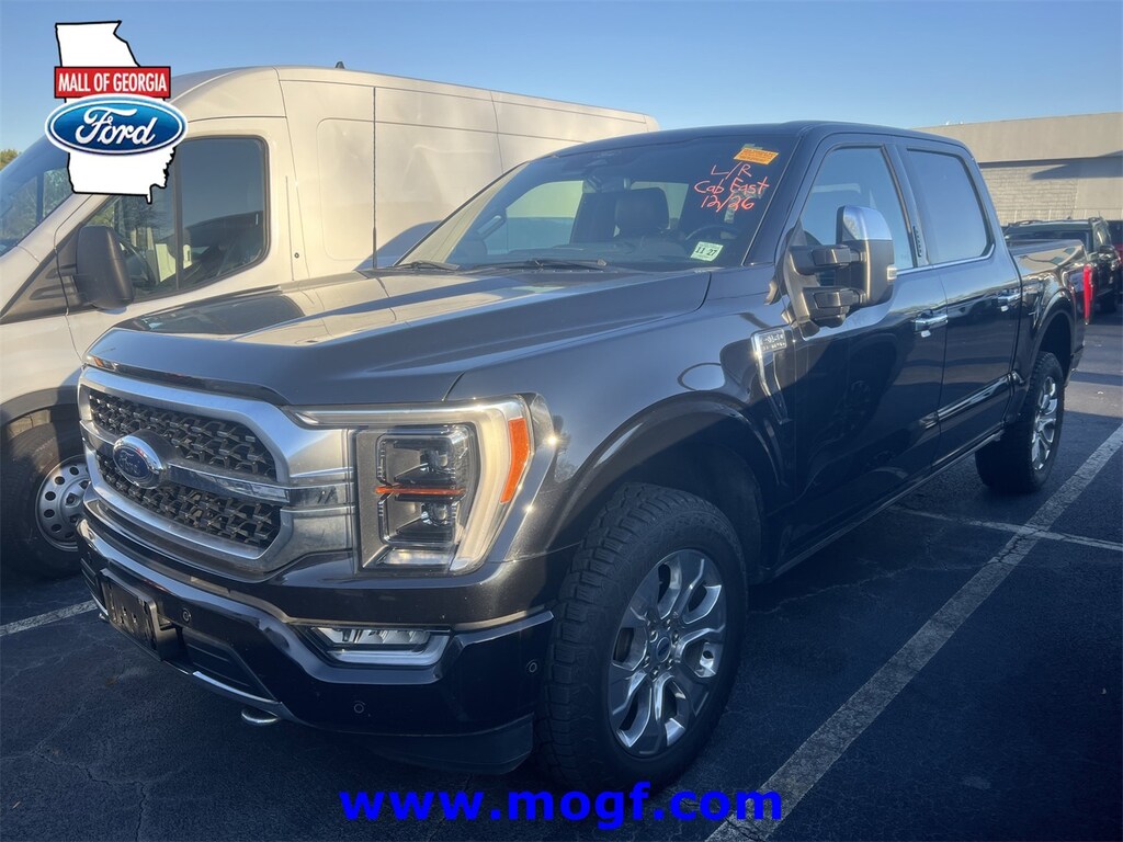 ** ALLOY WHEELS **, ** FORD CERTIFIED **, ** NAVIGATION / NAV / NAVI / GPS **, ** CLEAN CAR FAX **, ** SUNROOF / MOONROOF **, ** ONE OWNER **, **LEATHER**, F-150 Platinum, 4D SuperCrew, 3.5L V6 EcoBoost, 10-Speed Automatic, 4WD, Agate Black Metallic, Black w/Leather Trim Seats, 20" Polished Aluminum Wheels, 360 Degree Camera, 4x4 FX4 Off-Road Bodyside Decal, 8 Speakers, Active Park Assist 2.0, AM/FM radio: SiriusXM with 360L, Automatic temperature control, Bed Utility Package, BlueCruise, BoxLink, Brake assist, Class IV Trailer Hitch Receiver, Electronic Locking w/3.31 Axle Ratio, Electronic Stability Control, Equipment Group 701A High, Extended Range 36 Gallon Fuel Tank, Exterior Parking Camera Rear, Ford Co-Pilot360 Active 2.0, Fully automatic headlights, FX4 Off-Road Package, Garage door transmitter, Heated door mirrors, Heated front seats, Heated rear seats, Hill Descent Control, Integrated Trailer Brake Controller, LED Box Lighting, Low tire pressure warning, Memory seat, Monotube Rear Shocks, Navigation system: Connected Navigation, Off-Road Tuned Front Shock Absorbers, Pedal memory, Power Tailgate, Pro Trailer Backup Assist, Radio data system, Radio: B&O Sound System by Bang & Olufsen, Radio: B&O Unleashed Sound System by Bang & Olufsen, Rain sensing wipers, Remote keyless entry, Rock Crawl Mode, Security system, Steering wheel memory, Steering wheel mounted audio controls, SYNC 4 w/Enhanced Voice Recognition, Tailgate Step w/Tailgate Work Surface, Tow Technology Package, Traction control, Trailer Tow Package, Tray Style Floor Liner, Twin Panel Moonroof, Ventilated front seats. CARFAX One-Owner. Clean CARFAX. Certified.