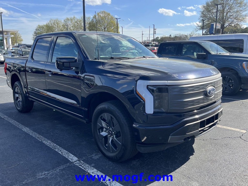 ** ALLOY WHEELS **, ** RUNNING BOARDS **, ** FORD CERTIFIED **, ** NAVIGATION / NAV / NAVI / GPS **, ** SUNROOF / MOONROOF **, ** LOW MILES **, **LEATHER**, F-150 Lightning Lariat, 4D Crew Cab, Electric Motor, Single-Speed Automatic, AWD, Antimatter Blue Metallic, Black/Medium Dark Slate w/Leather-Trimmed Heated & Ventilated Seats, 2nd Row Heated Seats, 8 Speakers, Active Park Assist 2.0, Auto High-beam Headlights, Automatic temperature control, Brake assist, Electronic Stability Control, Equipment Group 511A High, Ford BlueCruise 1.0, Forward Sensing System, Fully automatic headlights, Heated front seats, Low tire pressure warning, Max Trailer Tow Package, Navigation System, Power Tilt/Telescoping Steering Column w/Memory, Pro Trailer Backup Assist, Pro Trailer Hitch Assist, Radio data system, Radio: B&O Sound System by Bang & Olufsen, Rain-Sensing Wipers, Remote keyless entry, Security system, Speed-sensing steering, Steering wheel mounted audio controls, SYNC 4A w/Enhanced Voice Recognition, Tow Technology Package, Traction control, Trailer Brake Controller, Twin Panel Moonroof, Wheels: 20" Alloy Dark Carbonized Gray. CARFAX One-Owner. Certified.