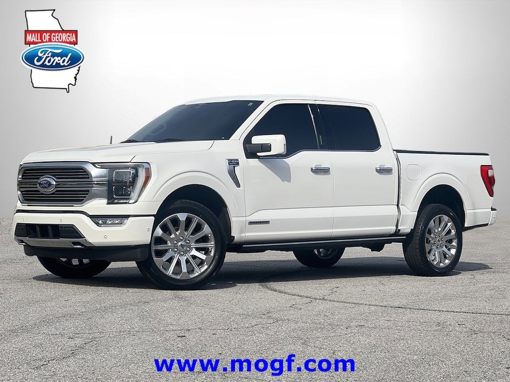 ** ALLOY WHEELS **, ** RUNNING BOARDS **, ** FORD CERTIFIED **, ** NAVIGATION / NAV / NAVI / GPS **, ** CLEAN CAR FAX **, ** SUNROOF / MOONROOF **, ** ONE OWNER **, ** LOW MILES **, **LEATHER**, F-150 Limited, 4D SuperCrew, 3.5L PowerBoost Full-Hybrid V6, 10-Speed Automatic, 4WD, White Metallic, Admiral Blue Cloth, 4-Wheel Disc Brakes, ABS brakes, Air Conditioning, Compass, Driver door bin, Driver vanity mirror, Dual front impact airbags, Dual front side impact airbags, Emergency communication system: SYNC 4 911 Assist, Front anti-roll bar, Front reading lights, Front wheel independent suspension, Illuminated entry, Low tire pressure warning, Occupant sensing airbag, Overhead airbag, Overhead console, Passenger vanity mirror, Power steering, Power windows, Radio data system, Radio: B&O Unleashed Sound System by Bang & Olufsen, Rear reading lights, Rear window defroster, Remote keyless entry, Speed-sensing steering, Steering wheel mounted audio controls, Tachometer, Telescoping steering wheel, Tilt steering wheel, Traction control, Trip computer. CARFAX One-Owner. Certified.