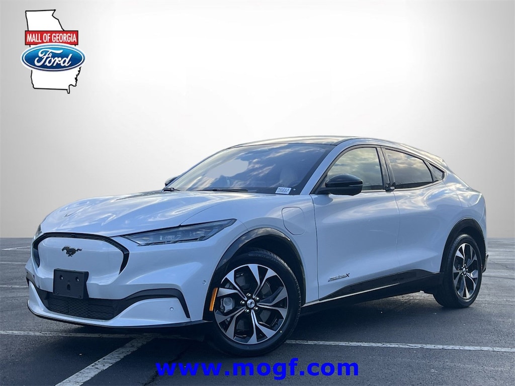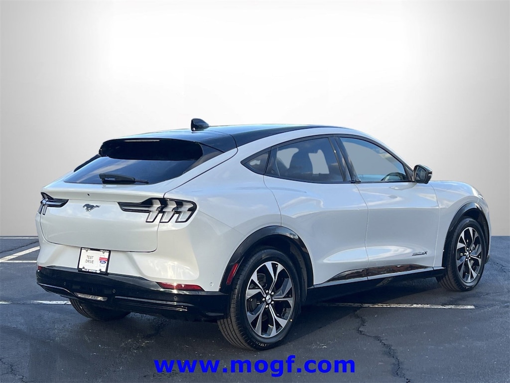 ** ALLOY WHEELS **, ** FORD CERTIFIED **, ** NAVIGATION / NAV / NAVI / GPS **, ** CLEAN CAR FAX **, ** SUNROOF / MOONROOF **, ** ONE OWNER **, **LEATHER**, Mustang Mach-E Premium, 4D Sport Utility, Electric Motor, Single-Speed Automatic, AWD, Space White Metallic, Light Space Gray w/Heated Perforated ActiveX Bucket Seats, 10 Speakers, 1st & 2nd Row Floor Liners w/o Carpet Mats, AM/FM radio: SiriusXM with 360L, AM/FM Stereo, Apple CarPlay/Android Auto, Automatic temperature control, Brake assist, Cargo Floor Liner, Electronic Stability Control, Equipment Group 300A, Exterior Parking Camera Rear, Fully automatic headlights, Garage door transmitter, Heated front seats, Heated Perforated ActiveX Bucket Seats, Heated steering wheel, Interior Protection Package (Pre-Installed), Low tire pressure warning, Memory seat, Navigation system: Connected Navigation, Power Liftgate, Radio data system, Rain sensing wipers, Remote keyless entry, Security system, SiriusXM Radio w/360L, Speed-Sensitive Wipers, Spoiler, Steering wheel mounted audio controls, SYNC 4A w/Enhanced Voice Recognition, Traction control, Wheels: 19" Shadow Silver-Painted Aluminum. CARFAX One-Owner. Clean CARFAX. Certified.