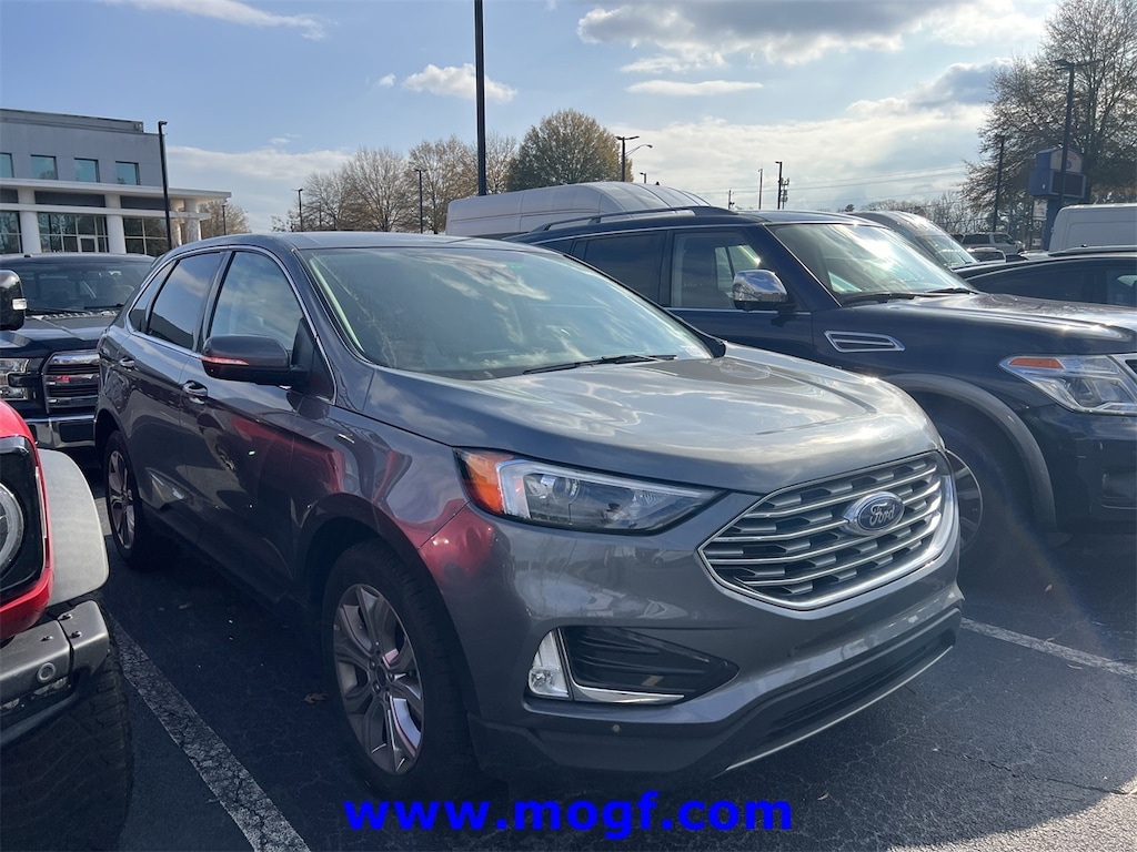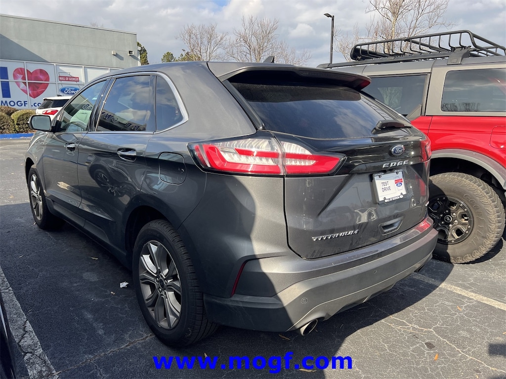 ** ALLOY WHEELS **, ** CLEAN CAR FAX **, ** LOCAL TRADE **, ** ONE OWNER **, **LEATHER**, Edge Titanium, 4D Sport Utility, EcoBoost 2.0L I4 GTDi DOHC Turbocharged VCT, 8-Speed Automatic, AWD, Carbonized Gray Metallic, Ebony w/ActiveX Trimmed w/FreeForm Sport Bucket Seats, 12 Speakers, ActiveX-Trimmed Heated Sport Bucket Seats, AM/FM radio: SiriusXM with 360L, Auto High-beam Headlights, Automatic temperature control, Brake assist, Electronic Stability Control, Equipment Group 300A, FordPass Connect, Front fog lights, Fully automatic headlights, Garage door transmitter, Heated front seats, Heated steering wheel, Low tire pressure warning, Memory seat, Power Liftgate, Radio: B&O Sound System by Bang & Olufsen, Rain sensing wipers, Remote keyless entry, Security system, SiriusXM w/360L, Speed-Sensitive Wipers, Spoiler, Steering wheel mounted audio controls, SYNC 4A w/Enhanced Voice Recognition, Traction control, Wheels: 19" Luster Nickel-Painted Aluminum. CARFAX One-Owner.