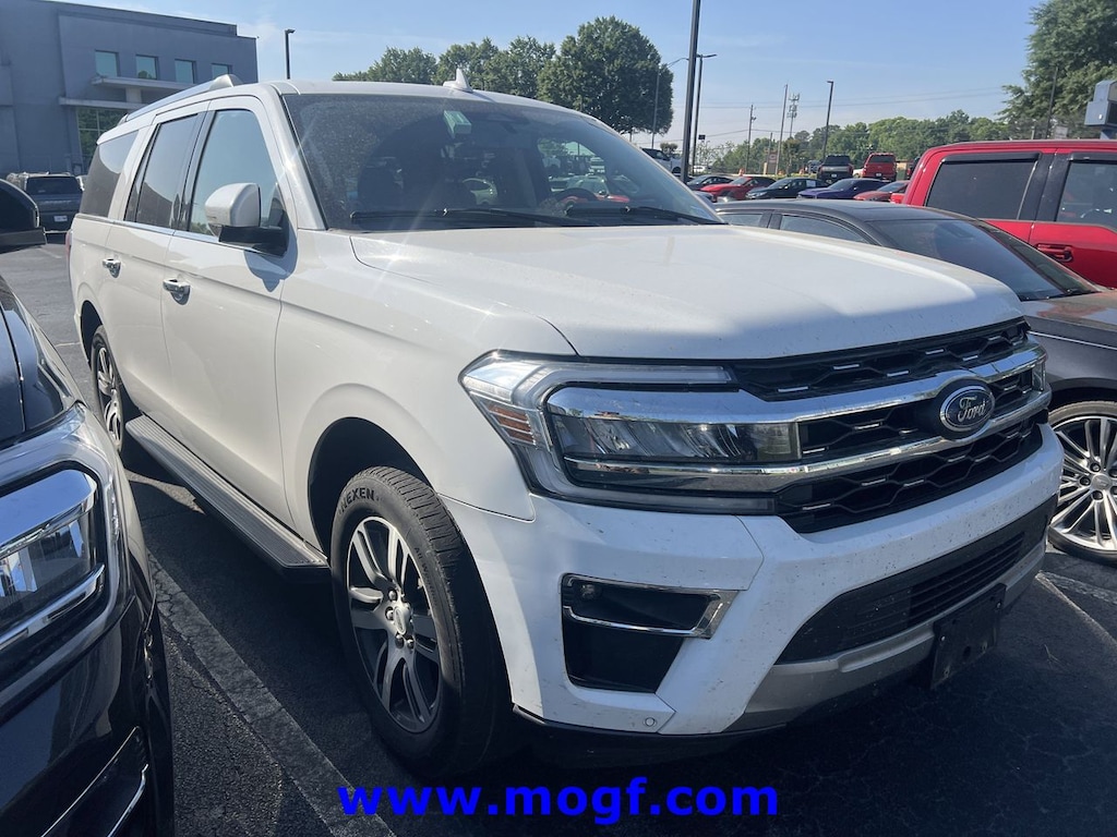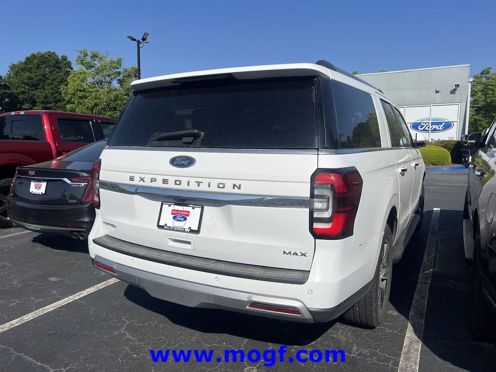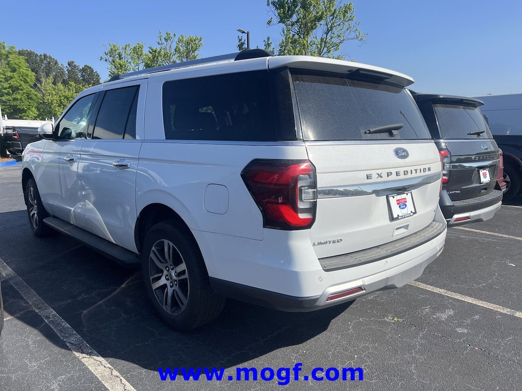 ** ALLOY WHEELS **, ** RUNNING BOARDS **, ** FORD CERTIFIED **, ** NAVIGATION / NAV / NAVI / GPS **, ** SUNROOF / MOONROOF **, **LEATHER**, Expedition Max Limited, 4D Sport Utility, EcoBoost 3.5L V6 GTDi DOHC 24V Twin Turbocharged, 10-Speed Automatic, 4WD, Oxford White, Sandstone Leather, 12 Speakers, Adjustable pedals, Air Conditioning, Auto-dimming door mirrors, Auto-dimming Rear-View mirror, Automatic temperature control, Bumpers: body-color, Compass, Driver door bin, Driver vanity mirror, Equipment Group 301A Mid Package, Front dual zone A/C, Front License Plate Bracket, Front reading lights, Garage door transmitter, Heated & Ventilated Leather Front Captain's Chairs, Heated door mirrors, Heated steering wheel, Illuminated entry, Leather steering wheel, Memory seat, Navigation system: Connected Navigation, Outside temperature display, Overhead console, Passenger vanity mirror, Pedal memory, Power door mirrors, Power driver seat, Power steering, Power windows, Radio data system, Radio: B&O Sound System by Bang & Olufsen, Rear air conditioning, Rear reading lights, Rear window defroster, Remote keyless entry, SiriusXM w/360L, Spoiler, Steering wheel memory, Steering wheel mounted audio controls, SYNC 4 w/Enhanced Voice Recognition, Tachometer, Telescoping steering wheel, Tilt steering wheel, Trip computer, Turn signal indicator mirrors, Voltmeter. CARFAX One-Owner. Certified.