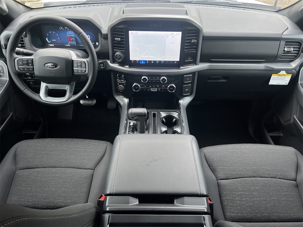 Equipment Group 302A Mid, Mobile Office Package (Console Worksurface and Partitioned Lockable Rear Storage), Tow/Haul Package, 3.5L PowerBoost Full-Hybrid V6, 4WD, 4-Wheel Disc Brakes, 6 Speakers, ABS brakes, Air Conditioning, Alloy wheels, AM/FM radio: SiriusXM with 360L, Auto High-beam Headlights, BlueCruise (Equipment + 1-Year Plan), Brake assist, Bumpers: chrome, Chrome wheels, Cloth 40/20/40 Front Seat, Compass, Delay-off headlights, Driver door bin, Driver vanity mirror, Dual front impact airbags, Dual front side impact airbags, Electronic Stability Control, Emergency communication system: SYNC 4 911 Assist, Front anti-roll bar, Front Center Armrest, Front fog lights, Front reading lights, Front wheel independent suspension, Fully automatic headlights, Heated door mirrors, Illuminated entry, Low tire pressure warning, Occupant sensing airbag, Outside temperature display, Overhead airbag, Overhead console, Panic alarm, Passenger door bin, Passenger vanity mirror, Power door mirrors, Power steering, Power windows, Radio data system, Radio: AM/FM Stereo w/SiriusXM 360L, Rear Parking Sensors, Rear reading lights, Rear step bumper, Rear window defroster, Remote keyless entry, Security system, Speed control, Split folding rear seat, Steering wheel mounted audio controls, SYNC 4 w/Enhanced Voice Recognition, Tachometer, Telescoping steering wheel, Tilt steering wheel, Tough Bed Spray-In Bedliner, Traction control, Trip computer, Variably intermittent wipers, Voltmeter, and Wheels: 18" Chrome-Like PVD.
