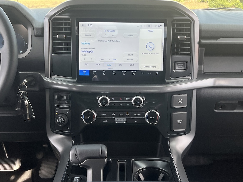 Equipment Group 301A Standard (6" Angular Bright Anodized Step Bar, Black Painted Grille w/Chrome Center Bar, Chrome Door & Tailgate Handles, Chrome Single-Tip Exhaust, Cloth 40/20/40 Front Seat w/Console, Dual-Zone Electronic Automatic Temperature Control, and Wrapped Steering Wheel), Mobile Office Package (Console Worksurface and Partitioned Lockable Rear Storage), Tow/Haul Package, 3.5L PowerBoost Full-Hybrid V6, 4WD, 4-Wheel Disc Brakes, 6 Speakers, ABS brakes, Air Conditioning, Alloy wheels, AM/FM radio: SiriusXM with 360L, Auto High-beam Headlights, Brake assist, Bumpers: chrome, Chrome wheels, Cloth 40/20/40 Front Seat, Compass, Delay-off headlights, Driver door bin, Driver vanity mirror, Dual front impact airbags, Dual front side impact airbags, Electronic Stability Control, Emergency communication system: SYNC 4 911 Assist, Front anti-roll bar, Front Center Armrest, Front fog lights, Front License Plate Bracket, Front reading lights, Front wheel independent suspension, Fully automatic headlights, Heated door mirrors, Illuminated entry, Internet access capable: FordPass Connect 5G, Low tire pressure warning, Occupant sensing airbag, Outside temperature display, Overhead airbag, Overhead console, Panic alarm, Passenger door bin, Passenger vanity mirror, Power door mirrors, Power steering, Power windows, Pro Power Onboard - 7.2KW, Radio data system, Radio: AM/FM Stereo w/SiriusXM 360L, Rear Parking Sensors, Rear reading lights, Rear step bumper, Rear window defroster, Remote keyless entry, Security system, Speed control, Split folding rear seat, Steering wheel mounted audio controls, SYNC 4 w/Enhanced Voice Recognition, Tachometer, Telescoping steering wheel, Tilt steering wheel, Traction control, Trip computer, Variably intermittent wipers, Voltmeter, and Wheels: 18" Chrome-Like PVD.