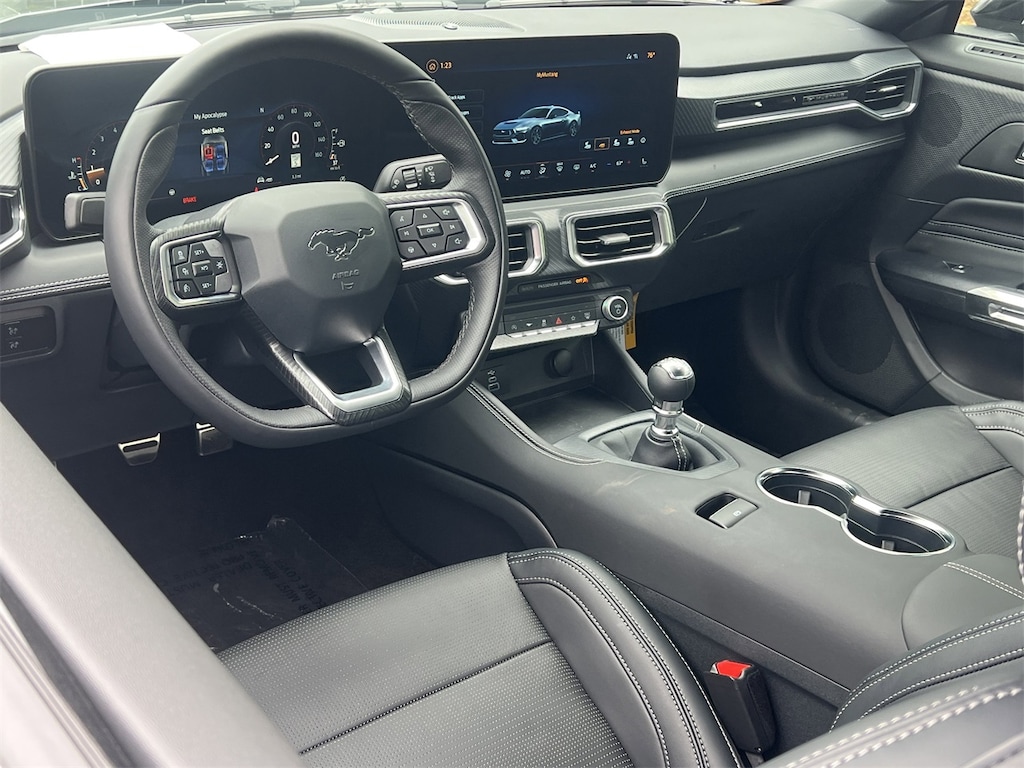 Equipment Group 401A High Package (Illuminated Door-Sill Scuff Plates and Leather-Trimmed Bucket Seats w/Color Accents), Mustang Nite Pony Package (Headlamps w/Black Bezels), Mustang Nite Pony Package w/Shadow Black Paint, 3.55 Limited Slip Rear Axle, 4-Wheel Disc Brakes, ABS brakes, Active Valve Performance Exhaust, Air Conditioning, Alloy wheels, AM/FM Stereo, Auto High-beam Headlights, Automatic temperature control, B&O Sound System by Bang & Olufsen w/12 Speakers, Brake assist, Bumpers: body-color, Compass, Delay-off headlights, Driver door bin, Driver vanity mirror, Dual front impact airbags, Dual front side impact airbags, Electronic Stability Control, Emergency communication system: 911 Assist, Exterior Parking Camera Rear, Four wheel independent suspension, Front anti-roll bar, Front Bucket Seats, Front Center Armrest, Front dual zone A/C, Front reading lights, Fully automatic headlights, Illuminated entry, Knee airbag, Leather Bucket Seats, Leather Shift Knob, Leather steering wheel, Low tire pressure warning, Occupant sensing airbag, Outside temperature display, Overhead airbag, Overhead console, Panic alarm, Passenger door bin, Passenger vanity mirror, Power door mirrors, Power steering, Power windows, Premium Floor Liners Front & Rear (w/Carpet Mats), Radio data system, Rain sensing wipers, Rear anti-roll bar, Rear Parking Sensors, Rear window defroster, Remote keyless entry, Speed control, Speed-sensing steering, Speed-Sensitive Wipers, Split folding rear seat, Spoiler, Sport steering wheel, Steering wheel mounted audio controls, SYNC 4, Tachometer, Telescoping steering wheel, Tilt steering wheel, Traction control, Trip computer, Variably intermittent wipers, and Voltmeter. Price includes: $3500 - Retail Customer Cash. Exp. 01/05/2026
