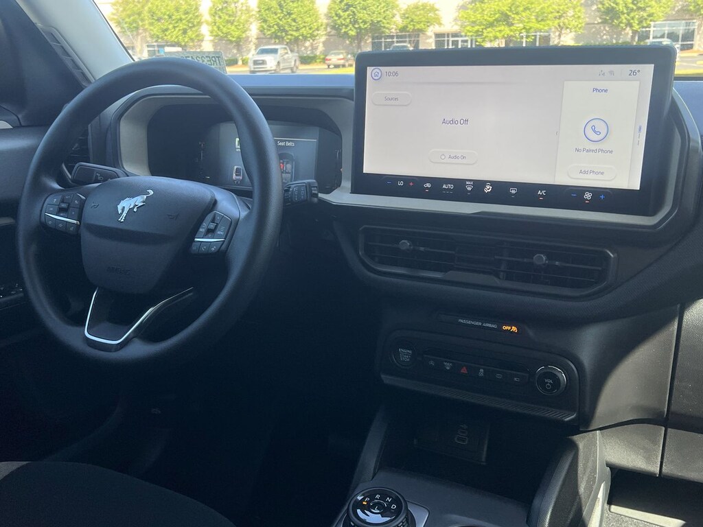 Equipment Group 200A Standard Package (AM/FM Stereo, Cloth with Easy-to-Clean Front Bucket Seats, SiriusXM with 360L, SYNC 4 with Enhanced Voice Recognition, and Wheels: 17" Carbonized Gray Painted Aluminum), Ford Connectivity Package (1-Year Included), Internet access capable: 5G Modem - Ford Connectivity Package, 4-Wheel Disc Brakes, 6 Speakers, ABS brakes, Air Conditioning, Alloy wheels, AM/FM radio: SiriusXM with 360L, Apple CarPlay/Android Auto, Auto High-beam Headlights, Automatic temperature control, Brake assist, Compass, Delay-off headlights, Driver door bin, Driver vanity mirror, Dual front impact airbags, Dual front side impact airbags, Electronic Stability Control, Emergency communication system: SYNC 4 911 Assist, Exterior Parking Camera Rear, Four wheel independent suspension, Front anti-roll bar, Front Bucket Seats, Front Center Armrest, Front reading lights, Fully automatic headlights, Heated door mirrors, Illuminated entry, Knee airbag, Low tire pressure warning, Occupant sensing airbag, Outside temperature display, Overhead airbag, Overhead console, Panic alarm, Passenger door bin, Passenger vanity mirror, Power door mirrors, Power steering, Power windows, Radio data system, Rear anti-roll bar, Rear Parking Sensors, Rear reading lights, Rear seat center armrest, Rear window defroster, Rear window wiper, Remote keyless entry, Security system, Speed control, Speed-sensing steering, Speed-Sensitive Wipers, Split folding rear seat, Steering wheel mounted audio controls, Tachometer, Telescoping steering wheel, Tilt steering wheel, Traction control, Trip computer, and Variably intermittent wipers.