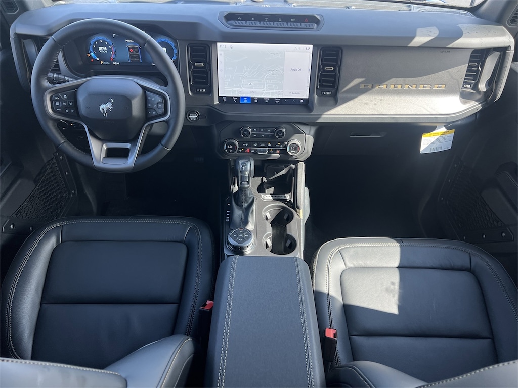 Equipment Group 334A Lux Package (2-Door Intelligent Access with Lock/Unlock, 360-Degree Camera, Adaptive Cruise Control, Ambient Footwell Lighting, Connected Navigation, Driver and Front Passenger Illuminated Sliding Visor Vanity Mirrors, Dual Smart Charging USB Ports, Dual-Zone Electronic Automatic Temperature Control, Evasive Steering Assist, Front Parking Sensors, Front Row Heated Seats, Heated Steering Wheel, Information on Demand Panel, Marine Grade Vinyl Heated Bucket Seats, Pro Power Onboard - 400W, Rear Parking Sensors, Sideview Mirrors, and Wheels: 17" Carbonized Gray-Painted Aluminum), Ford Connectivity Package (1-Year Included), Ford Connectivity Package (one-Time Purchase - 7 Years), Sasquatch Package (Front Stabilizer Disconnect, High Clearance Suspension, and Position-Sensitive Bilstein Shock Absorbers), 4-Wheel Disc Brakes, 7 Speakers, ABS brakes, Air Conditioning, Alloy wheels, AM/FM radio: SiriusXM with 360L, AM/FM Stereo, Auto High-Beam Headlamps, Auto High-beam Headlights, Auto-dimming Rear-View mirror, BLIS Blind Spot Information System, Brake assist, Carbonized Gray Molded-in-Color Hard Top, Compass, Delay-off headlights, Driver door bin, Driver vanity mirror, Dual front impact airbags, Dual front side impact airbags, Electronic Stability Control, Emergency communication system: 911 Assist, Exterior Parking Camera Rear, Ford Performance Heavy-Duty Modular Front Bumper, Front and Rear Floor Liners Without Carpet Floor Mats, Front anti-roll bar, Front Bucket Seats, Front Center Armrest, Front fog lights, Front reading lights, Front Row Top Panels and Door Storage Bags, Front wheel independent suspension, Fully automatic headlights, Hard Top Sound Deadening Headliner, Heated door mirrors, Heated front seats, Illuminated entry, Integrated roll-over protection, Lane-Keeping System, Leather Shift Knob, Leather-Trimmed/Vinyl Bucket Seats, Low tire pressure warning, Occupant sensing airbag, Outside temperature display, Overhead airbag, Overhead console, Panic alarm, Passenger door bin, Passenger vanity mirror, Power door mirrors, Power steering, Power windows, Pre-Collision Assist with Automatic Emergency Braking, Radio data system, Rear-View Camera, Rear-Window Defroster and Washer, Remote keyless entry, Security system, SiriusXM with 360L, Speed control, Split folding rear seat, Steering wheel mounted audio controls, SYNC 4, Tachometer, Telescoping steering wheel, Tilt steering wheel, Traction control, Trip computer, Variably intermittent wipers, Voltmeter, Wheels: 17" Black High Gloss-Painted Aluminum, and Wheels: 17" Matte Black Alloy. Price includes: $750 - Retail Customer Cash. Exp. 04/30/2026