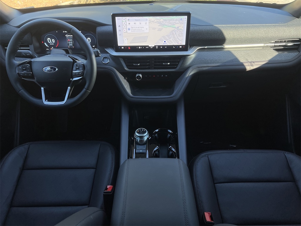 Equipment Group 600A Standard Package, 14 Speakers, 3rd row seats: bench, 4-Wheel Disc Brakes, ABS brakes, ActiveX Trimmed Captain's Chairs, Air Conditioning, Alloy wheels, AM/FM radio: SiriusXM with 360L, Apple CarPlay/Android Auto, Auto High-beam Headlights, Auto-dimming door mirrors, Auto-dimming Rear-View mirror, Automatic temperature control, Brake assist, Bumpers: body-color, Compass, Delay-off headlights, Driver door bin, Driver vanity mirror, Dual front impact airbags, Dual front side impact airbags, Electronic Stability Control, Emergency communication system: 911 Assist, Exterior Parking Camera Rear, Ford Connectivity Pack (1-Time Purchase - 7 Years), Four wheel independent suspension, Front anti-roll bar, Front Bucket Seats, Front Center Armrest, Front dual zone A/C, Front fog lights, Front reading lights, Fully automatic headlights, Garage door transmitter, Heated door mirrors, Heated front seats, Heated rear seats, Heated steering wheel, Illuminated entry, Knee airbag, Leather steering wheel, Low tire pressure warning, Memory seat, Navigation System, Occupant sensing airbag, Outside temperature display, Overhead airbag, Overhead console, Panic alarm, Panoramic Fixed Glass Roof w/Power Shade, Passenger door bin, Passenger vanity mirror, Power door mirrors, Power driver seat, Power Liftgate, Power passenger seat, Power steering, Power windows, Radio data system, Radio: B&O Sound System by Bang & Olufsen w/HD, Rain sensing wipers, Rear air conditioning, Rear anti-roll bar, Rear reading lights, Rear window defroster, Rear window wiper, Remote keyless entry, Security system, Speed control, Speed-sensing steering, Speed-Sensitive Wipers, Split folding rear seat, Spoiler, Steering wheel mounted audio controls, Tachometer, Telescoping steering wheel, Tilt steering wheel, Traction control, Trip computer, Turn signal indicator mirrors, Variably intermittent wipers, Ventilated front seats, and Wheels: 20" Luster Nickel-Painted Aluminum.