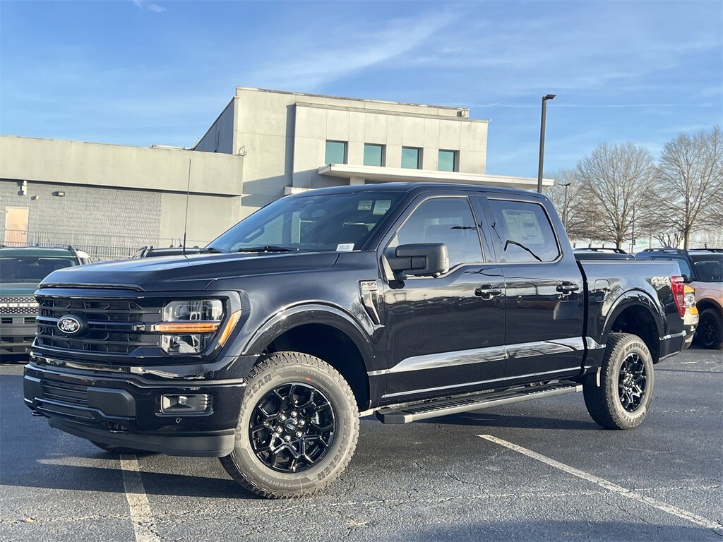Equipment Group 302A Mid (18" Painted Aluminum Wheels, 360 Degree Camera, 400W Pro Power Onboard (cab & Bed), Adaptive Cruise Control with Stop and Go, AEB Oncoming, Auto-Dimming Rear-View Mirror, Body-Color Door Handles, Chrome Front and Rear Bumpers, Cloth 40/20/40 Front Seat, Dual-Zone Electronic Automatic Temperature Control, Ford Co-Pilot360 Assist 2.0, Front Parking Sensors, Heated Front Seats, Intelligent Access with Push Button Start, Power Glass Heated Sideview Mirrors, Power-Sliding Rear Window, Radio: AM/FM Stereo with SiriusXM 360L, Remote Start System with Remote Tailgate Release, SYNC 4 with Enhanced Voice Recognition, Towing Technology, and Wrapped Steering Wheel), Ford Connectivity Package (1-Year Included), Internet access capable: 5G Modem - Ford Connectivity Package, Tow/Haul Package, XLT Black Appearance Package (Unique Sport Cloth 40/Console/40 Front-Seats), 4WD, 4-Wheel Disc Brakes, 6 Speakers, ABS brakes, Air Conditioning, Alloy wheels, AM/FM radio: SiriusXM with 360L, Auto High-beam Headlights, BlueCruise (equipment + 1 Year + 90-Day Plan), Brake assist, Bumpers: body-color, Compass, Delay-off headlights, Driver door bin, Driver vanity mirror, Dual front impact airbags, Dual front side impact airbags, Electronic Stability Control, Emergency communication system: SYNC 4 911 Assist, Front anti-roll bar, Front Center Armrest, Front fog lights, Front reading lights, Front wheel independent suspension, Fully automatic headlights, Heated door mirrors, Illuminated entry, Low tire pressure warning, Occupant sensing airbag, Outside temperature display, Overhead airbag, Overhead console, Panic alarm, Passenger door bin, Passenger vanity mirror, Power door mirrors, Power steering, Power windows, Radio data system, Rear Parking Sensors, Rear reading lights, Rear step bumper, Rear window defroster, Remote keyless entry, Security system, Speed control, Split folding rear seat, Steering wheel mounted audio controls, Tachometer, Telescoping steering wheel, Tilt steering wheel, Tough Bed Spray-in Bedliner, Traction control, Trip computer, and Variably intermittent wipers.