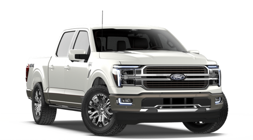 Equipment Group 601A High (King Ranch Multicontour Leather Bucket Seats, Power-Deployable Running Boards, Radio: B&O Unleashed Sound System by Bang & Olufsen, and Wheels: 20" Chrome-Like PVD), Ford Connectivity Package (1-Year Included), Ford Connectivity Package (one-Time Purchase - 7 Years), GVWR: 7,400 lbs Payload Package, Internet access capable: 5G Modem - Ford Connectivity Package, 3.5L PowerBoost Full-Hybrid V6, 4WD, 4-Wheel Disc Brakes, 8 Speakers, ABS brakes, Adjustable pedals, Air Conditioning, Alloy wheels, AM/FM radio: SiriusXM with 360L, Auto High-beam Headlights, Auto tilt-away steering wheel, Auto-dimming door mirrors, Auto-dimming Rear-View mirror, Automatic temperature control, BlueCruise (equipment + 1-Time Purchase), Brake assist, Chrome wheels, Compass, Delay-off headlights, Driver door bin, Driver vanity mirror, Driver's Side SecuriCode Keyless-Entry Keypad, Dual front impact airbags, Dual front side impact airbags, Electronic Stability Control, Emergency communication system: SYNC 4 911 Assist, Front anti-roll bar, Front Bucket Seats, Front Center Armrest, Front dual zone A/C, Front fog lights, Front License Plate Bracket, Front reading lights, Front wheel independent suspension, Fully automatic headlights, Garage door transmitter, Genuine wood dashboard insert, Heated door mirrors, Heated front seats, Heated rear seats, Heated steering wheel, Illuminated entry, Leather steering wheel, Low tire pressure warning, Memory seat, Navigation system: Connected Navigation, Occupant sensing airbag, Outside temperature display, Overhead airbag, Overhead console, Panic alarm, Passenger door bin, Passenger vanity mirror, Pedal memory, Power door mirrors, Power driver seat, Power passenger seat, Power steering, Power windows, Pro Access Tailgate, Pro Power Onboard - 7.2KW, Radio data system, Radio: B&O Sound System by Bang and Olufsen, Rain sensing wipers, Rear reading lights, Rear seat center armrest, Rear step bumper, Rear window defroster, Remote keyless entry, Security system, Speed control, Split folding rear seat, Steering wheel memory, Steering wheel mounted audio controls, SYNC 4 with Enhanced Voice Recognition, Tachometer, Telescoping steering wheel, Tilt steering wheel, Traction control, Trip computer, Turn signal indicator mirrors, Twin Panel Moonroof, Variably intermittent wipers, and Ventilated front seats. Price includes: $500 - Retail Customer Cash. Exp. 04/30/2026