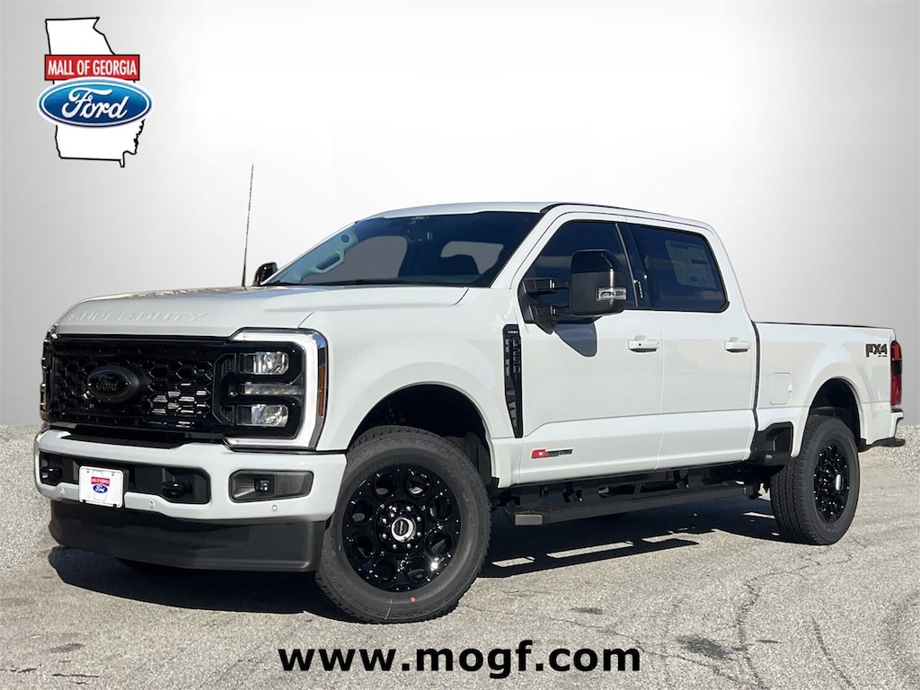 Black Appearance Package (6" Ebony Black Angular Running Boards, Black Painted Front Grille Surround, Body Color Front & Rear Bumpers, Ebony Black Painted Mirror Caps, Rear Wheel Well Liners (Pre-Installed), Tough Bed Spray-In Bedliner, and Wheels: 20" Ebony Black High Gloss), F-250 >10K GVWR Package, Ford Connectivity Package (1-Year Included), FX4 Off-Road Package (Hill Descent Control, Off-Road Specifically Tuned Shock Absorbers, and Unique FX4 Off-Road Box Decal), High Capacity 11.6" Axle Upgrade Package, Internet access capable: 5G Modem - Ford Connectivity Package, Lariat Premium Package (Lane Departure Warning System, Power-Sliding Rear-Window w/Defrost, Privacy Glass, Pro Trailer Backup Assist, and Pro Trailer Hitch Assist), Lariat Ultimate Package (4-Way Adjustable Headrests, Head-Up Display, Power-Deployable Running Boards, Radio: B&O Unleashed Sound System by Bang & Olufsen, SiriusXM w/360L, SYNC 4 w/Enhanced Voice Recognition, and Tailgate Step & Handle), Order Code 608A, 4WD, 4-Wheel Disc Brakes, 410 Amp Dual Alternators, 8 Speakers, ABS brakes, Adaptive Cruise Control w/Stop-and-Go, Adjustable pedals, Air Conditioning, Alloy wheels, AM/FM radio: SiriusXM with 360L, Auto High-beam Headlights, Auto-dimming Rear-View mirror, Automatic High Beam, Automatic temperature control, BLIS w/Cross-Traffic Alert, Brake assist, Bumpers: chrome, Compass, Delay-off headlights, Driver door bin, Driver vanity mirror, Dual AGM 68 AH Battery, Dual front impact airbags, Dual front side impact airbags, Electronic Stability Control, Emergency communication system: SYNC 4 911 Assist, Engine Block Heater, Flow-Through Console, Front & Rear Parking Sensors, Front ActiveX Trimmed 40/Console/40 Seats, Front anti-roll bar, Front Bucket Seats, Front Center Armrest, Front dual zone A/C, Front fog lights, Front License Plate Bracket, Front reading lights, Fully automatic headlights, Garage door transmitter, Heated door mirrors, Heated front seats, Heated rear seats, Heated steering wheel, Illuminated entry, Lane-Keeping System, Low tire pressure warning, Memory seat, Navigation system: Connected Navigation, Outside temperature display, Overhead airbag, Overhead console, Panic alarm, Passenger door bin, Passenger vanity mirror, Pedal memory, Post-Collision Braking, Power door mirrors, Power driver seat, Power passenger seat, Power steering, Power windows, Pre-Collision Assist, Pro Power Onboard - 2kW, Radio: B&O Sound System by Bang & Olufsen, Rain sensing wipers, Rapid-Heat Supplemental Cab Heater, Rear Parking Sensors, Rear reading lights, Rear seat center armrest, Rear step bumper, Rear window defroster, Remote keyless entry, SecuriCode Keyless Entry Keypad (Driver's Side), Security system, Speed control, Split folding rear seat, Steering wheel mounted audio controls, Tachometer, Telescoping steering wheel, Tilt steering wheel, Traction control, Trip computer, Turn signal indicator mirrors, Twin Panel Power Moonroof, Upfitter Switches (6), Variably intermittent wipers, Ventilated front seats, and Wheels: 18" Bright Machined & Carbonized Gray Alum.