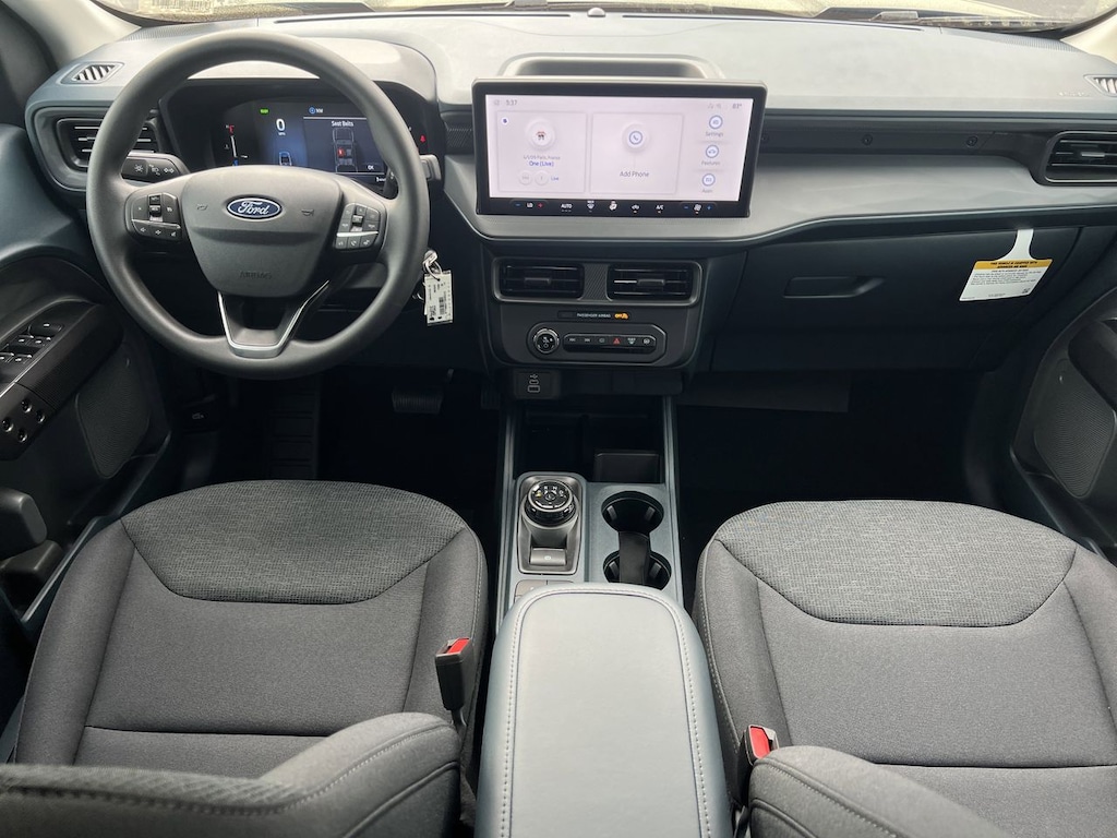 Equipment Group 100A (Front Cloth Bucket Seats, Radio: AM/FM Stereo with 6 Speakers, SiriusXM with 360L, SYNC 4 with Enhanced Voice Recognition, and Wheels: 17" Steel with Sparkle Silver Painted Cover), Ford Connectivity Package (1-Year Included), Internet access capable: 5G Modem - Ford Connectivity Package, 2.5L I-4 Hybrid, 2.91 Axle Ratio, 2K Trailer Hitch Receiver with 4-Pin Connector, 4-Wheel Disc Brakes, 6 Speakers, ABS brakes, Air Conditioning, AM/FM radio: SiriusXM with 360L, Apple CarPlay/Android Auto, Auto High Beams, Auto High-beam Headlights, Automatic temperature control, Brake assist, Bumpers: body-color, Compass, Delay-off headlights, Driver door bin, Driver vanity mirror, Dual front impact airbags, Dual front side impact airbags, Electronic Stability Control, Emergency communication system: SYNC 4 911 Assist, Exterior Parking Camera Rear, Front anti-roll bar, Front Bucket Seats, Front Center Armrest, Front reading lights, Front wheel independent suspension, Fully automatic headlights, Illuminated entry, Intersection Assist, Knee airbag, Lane-Keeping System, Low tire pressure warning, Occupant sensing airbag, Outside temperature display, Overhead airbag, Overhead console, Panic alarm, Passenger door bin, Passenger vanity mirror, Power steering, Power windows, Pre-Collision Assist with Automatic Emergency Braking, Radio data system, Rear anti-roll bar, Rear step bumper, Rear-View Camera, Remote keyless entry, Speed control, Speed-sensing steering, Steering wheel mounted audio controls, Telescoping steering wheel, Tilt steering wheel, Traction control, and Trip computer.