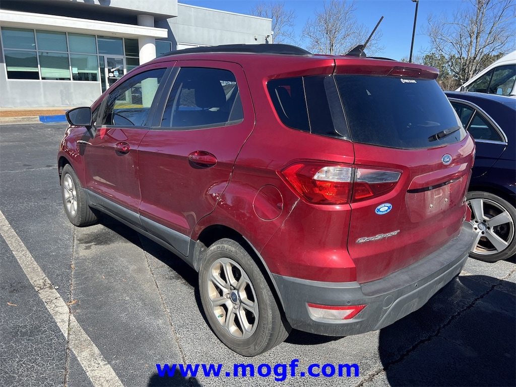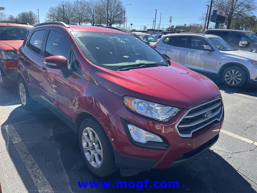 ** ALLOY WHEELS **, ** LOCAL TRADE **, ** ONE OWNER **, EcoSport SE, 4D Sport Utility, EcoBoost 1.0L I3 GTDi DOHC Turbocharged VCT, 6-Speed Automatic, FWD, Ruby Red Metallic Tinted Clearcoat, Ebony Black w/Unique Cloth Heated Front Bucket Seats, 110V/150W AC Power Outlet, 6 Speakers, 7 Speakers, AM/FM radio: SiriusXM, Ambient Lighting, Automatic temperature control, BLIS Blind Spot Information System, Brake assist, Electronic Stability Control, Equipment Group 200A, Exterior Parking Camera Rear, Front fog lights, Fully automatic headlights, Heated front seats, Leather Shift Knob, Leather steering wheel, Low tire pressure warning, Power moonroof, Radio data system, Radio: AM/FM Stereo w/MP3 Capable, Remote keyless entry, SE Convenience Package, SiriusXM Radio, SiriusXM Traffic & Travel Link, Steering wheel mounted audio controls, SYNC 3 Communications & Entertainment System, SYNC 3 Communications & Entertainment System w/47B, Traction control, Unique Cloth Heated Front Bucket Seats, Wheels: 16" Shadow Silver-Painted Aluminum. CARFAX One-Owner.