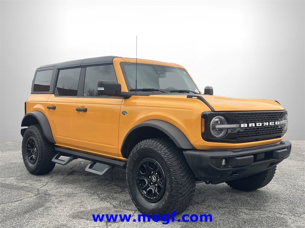 ** ALLOY WHEELS **, ** NAVIGATION / NAV / NAVI / GPS **, ** CLEAN CAR FAX **, ** LOCAL TRADE **, ** ONE OWNER **, ** LOW MILES **, **LEATHER**, Bronco Wildtrak, 4D Sport Utility, 2.7L EcoBoost V6, 10-Speed Automatic, 4WD, Cyber Orange Metallic Tricoat, Medium Sandstone w/Black Onyx w/Heated Leather-Trimmed/Vinyl Bucket Seats, 12" LCD Capacitive Touchscreen w/Swipe Capability, 2 Smart Charging USB Ports In Dashboard, 360-Degree Camera, 6 Speakers, Adaptive Cruise Control, Additional Sound Deadening, AM/FM radio: SiriusXM with 360L, AM/FM Stereo, Auto High-beam Headlights, Brake assist, Carbonized Gray Molded-In-Color Hard Top, Connected Built-In Navigation, Electronic Stability Control, Equipment Group 354A Lux Package, Evasive Steering Assist, Exterior Parking Camera Rear, Front Parking Sensors, Front Row Top Panels Storage Bag, Fully automatic headlights, Heated door mirrors, Heated Steering Wheel, Information on Demand Panel, Low tire pressure warning, Navigation system: Connected Navigation, Radio data system, Radio: B&O Sound System by Bang & Olufsen, Rear-Window Defroster & Washer, Remote keyless entry, Security system, Sideview Mirrors, SiriusXM Radio w/360L, Steering wheel mounted audio controls, SYNC 4, Universal Garage Door Opener, Wheels: 17" Black High Gloss-Painted Aluminum, Wireless Charging Pad. CARFAX One-Owner.