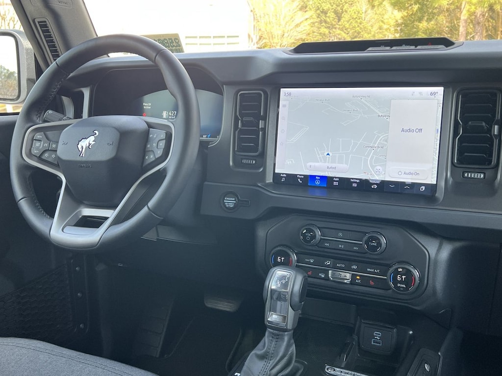 Equipment Group 222A Mid Package (2-Door Intelligent Access w/Lock/Unlock, Ambient Footwell Lighting, Connected Navigation, Dr & Pass Illuminated Sliding Visor Vanity Mirrors, Dual Smart Charging USB Ports, Dual-Zone Electronic Automatic Temperature Control, Front Row Heated Seats, Power Outlet - Back Side of Center Floor Console, and Rear Parking Sensors), 4-Wheel Disc Brakes, 4.46 Axle Ratio, 7 Speakers, ABS brakes, Air Conditioning, Alloy wheels, AM/FM radio: SiriusXM with 360L, AM/FM Stereo, Auto High-Beam Headlamps, Auto High-beam Headlights, BLIS Blind Spot Information System, Brake assist, Carbonized Gray Molded-In-Color Hard Top, Cloth Bucket Seats, Compass, Delay-off headlights, Driver door bin, Driver vanity mirror, Dual front impact airbags, Dual front side impact airbags, Electronic Stability Control, Emergency communication system: 911 Assist, Exterior Parking Camera Rear, Front anti-roll bar, Front Bucket Seats, Front Center Armrest, Front License Plate Bracket, Front reading lights, Front wheel independent suspension, Fully automatic headlights, Heated door mirrors, Illuminated entry, Integrated roll-over protection, Internet access capable: FordPass Connect, Lane-Keeping System, Leather Shift Knob, Low tire pressure warning, Occupant sensing airbag, Outside temperature display, Overhead airbag, Overhead console, Panic alarm, Passenger door bin, Passenger vanity mirror, Power door mirrors, Power steering, Power windows, Pre-Collision Assist w/Automatic Emergency Braking, Radio data system, Rear-View Camera, Rear-Window Defroster & Washer, Remote keyless entry, Security system, SiriusXM w/360L, Speed control, Split folding rear seat, Steering wheel mounted audio controls, SYNC 4, Tachometer, Telescoping steering wheel, Tilt steering wheel, Traction control, Trip computer, Variably intermittent wipers, and Wheels: 17" Carbonized Gray-Painted Aluminum. Price includes: $2750 - Retail Customer Cash. Exp. 04/30/2026